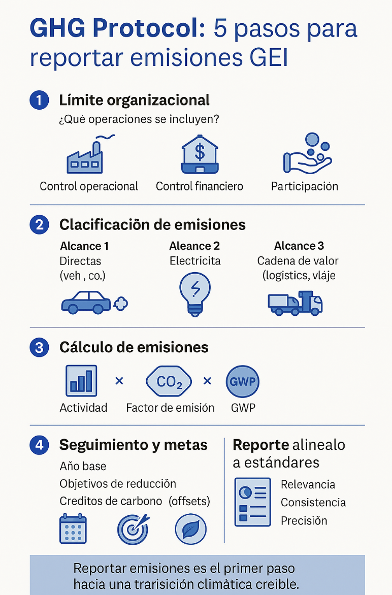 5 pasos esenciales para reportar emisiones según el GHG Protocol