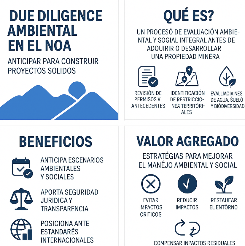 De esta manera, el due diligence se convierte en un instrumento para agregar valor, mostrando que la minería del NOA puede ser competitiva y, al mismo tiempo, respetuosa del entorno y de las expectativas sociales.