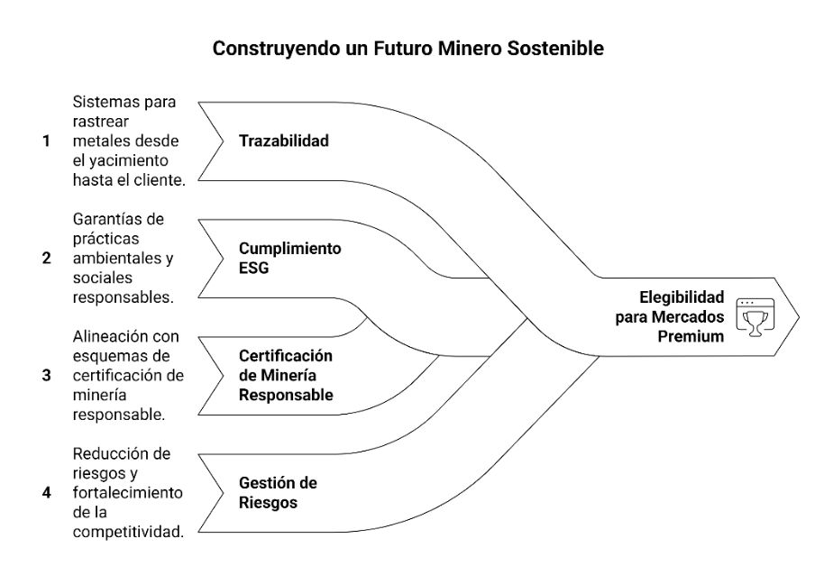 Para una compañía minera, esto implica construir sistemas de trazabilidad desde el yacimiento hasta el cliente, que permitan demostrar qué prácticas ambientales y sociales acompañan cada tonelada de producto. Pueden utilizarse enfoques de mass balance, sistemas digitales de seguimiento e incluso soluciones basadas en blockchain, siempre que se asegure integridad de la información y auditorías independientes.